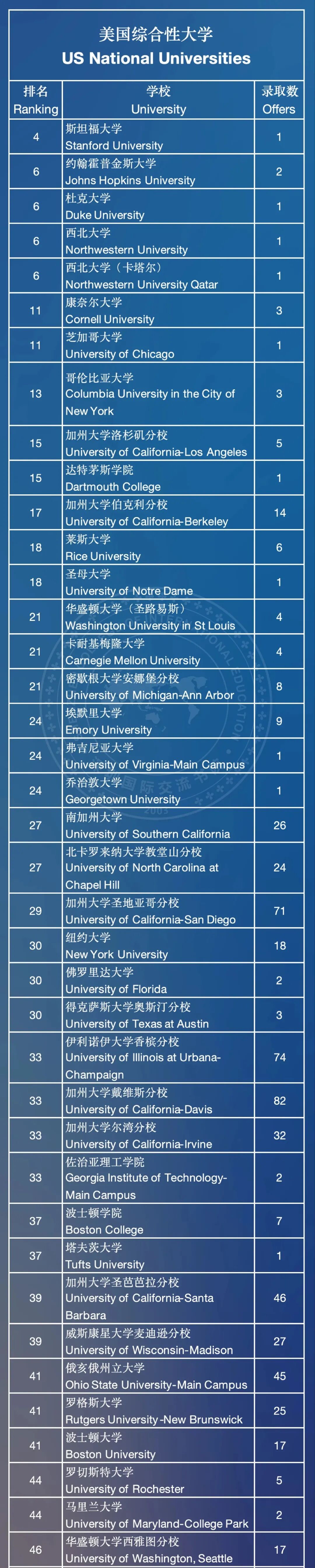 深国交表示,学子们在美国 “藤校+Top10”、美国Top20、Top30 以及Top30-50录取的分段数据都超亮眼。证明了深国交既能托举尖子生,而且对申美的 “中坚大多数” 学生也特别友好。