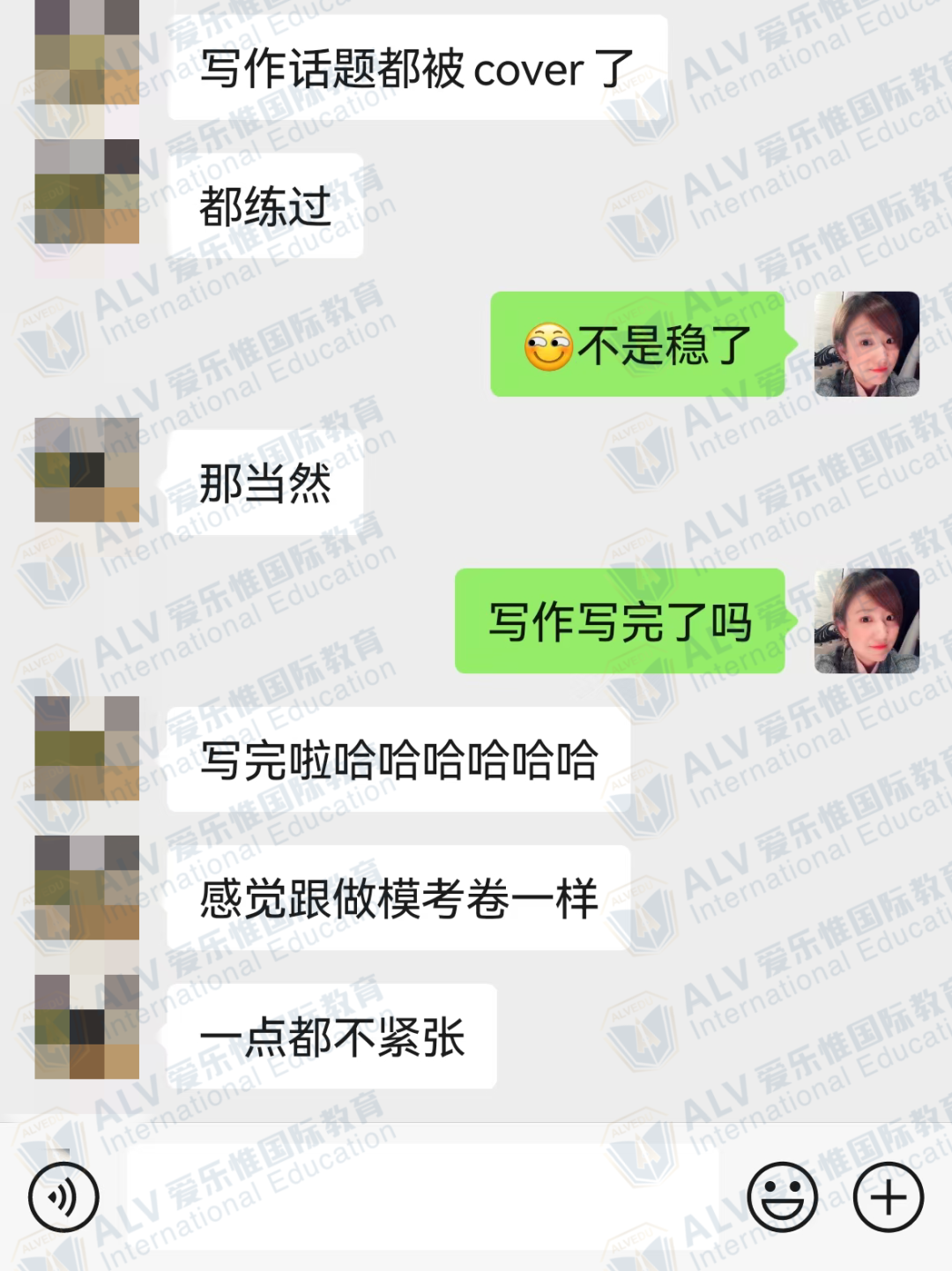 学生反应题目与ALV平时练习的题目吻合、话题基本平时都有练习到,主要考察学生的逻辑表达能力、词汇应用、语法应用。