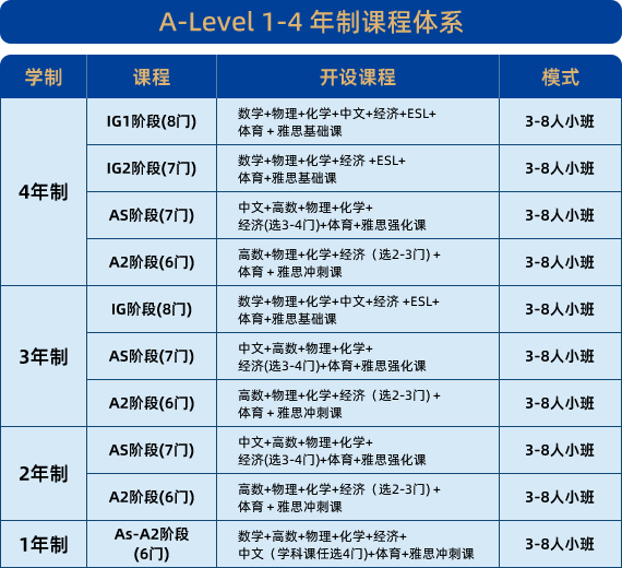 ALEVEL 课程体系设置