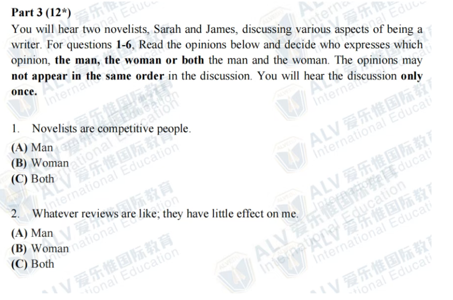 Part 3:男女观点匹配单选(题型难度完全一致)